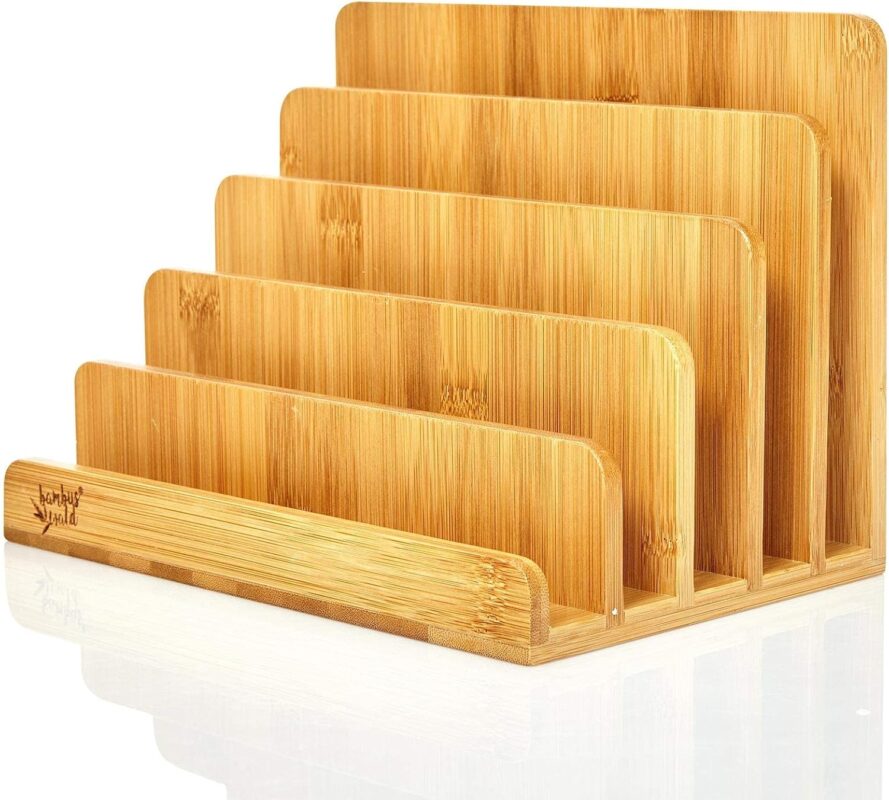 Magazine File Holder, A4 Document Storage Rack, Office Desk Organiser, Bambuwood Natural Book Rack